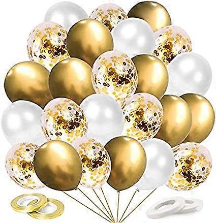60 balloons: 20 gold confetti balloons, 30 white latex balloons, 10 gold balloons, up to 30 cm in diameter when inflated. Gold latex balloons are durable and safe for children and adults. Suitable for party decorations, happy birthdays, christenings, weddings, and baby showers. These confetti balloons can be filled with helium or air. To inflate them, shake the confetti-filled balloons and gently rub them with hair, silk, or wool. This creates friction, and the gold foil flakes will stick to the sides, making the balloons look even more beautiful. Helium compatibility and durability: Air filling: Helium filling: Lifespan of several weeks: Flight time approx. 6-10 hours.