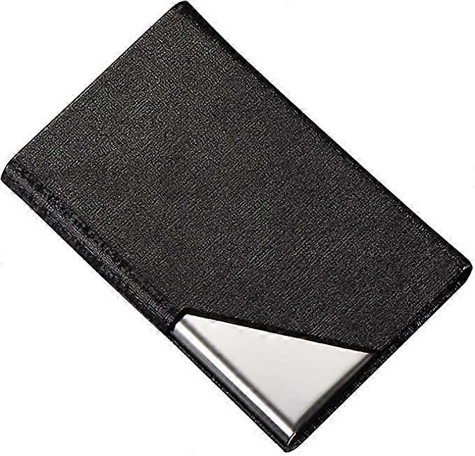 Made from high-quality stainless steel and high-quality synthetic leather, the business card holder is ultra-durable.Slim, large capacity, can hold up to 15-20 business cards depending on card thickness.Excellent protection and organization of your card. Dimensions: 9.5 x 6.5 x 1.3 cm.Contents: 1 x black business card holder.