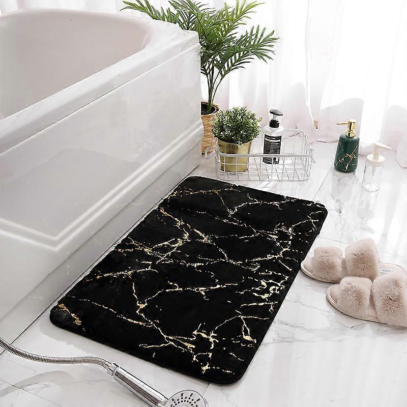 Dww-A black bath mat, washable non-slip bath mat, 40 x 60 cm bathroom mat with gold decoration, household mat, luxury bathroom accessory