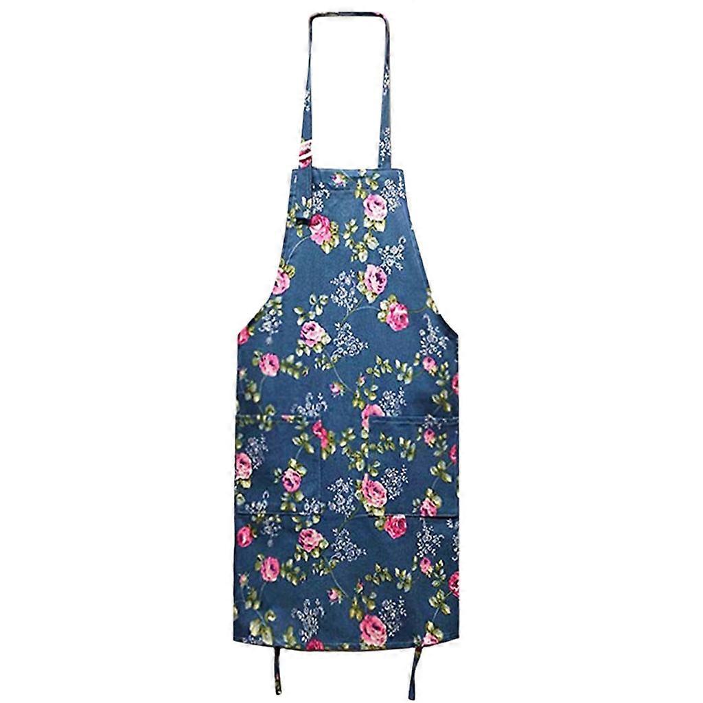 Dww-Blue floral bag for men and women with adjustable grill apron, wreath for baking and gardening, and retro apron for bakers