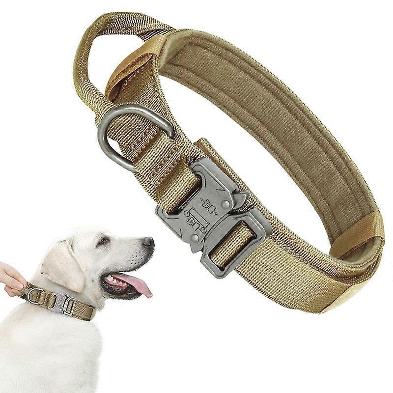 Dww-A khaki dog collar, tactical dog collar L (43-52CM), pulse and strong traction, adjustable dog collar
