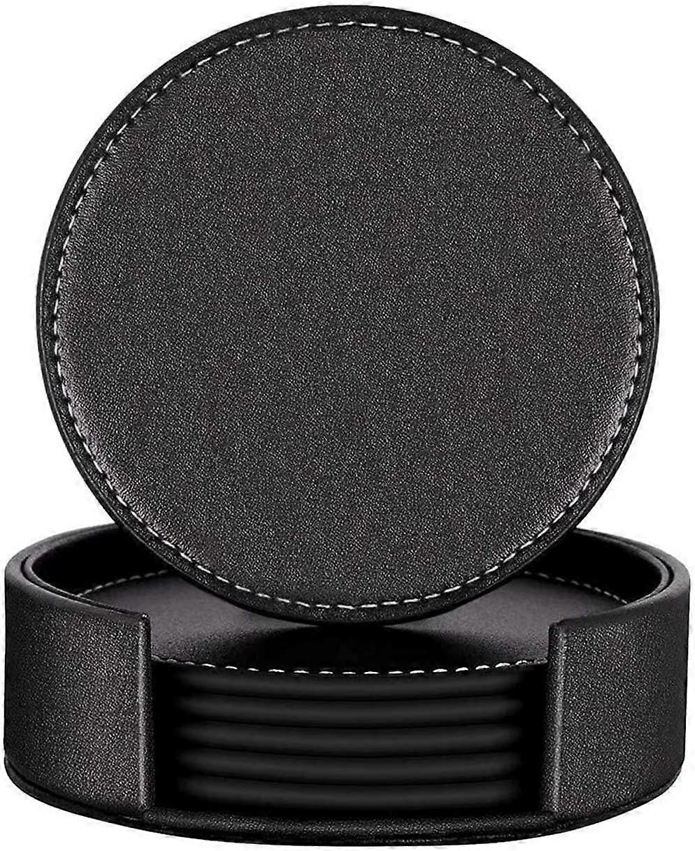 PU Leather Coasters, Set of 6 Coasters - Round, for Pint Glass of Beer, Coffee Mugs, Tea Cups and Bottles - Parties, Home, Office and More