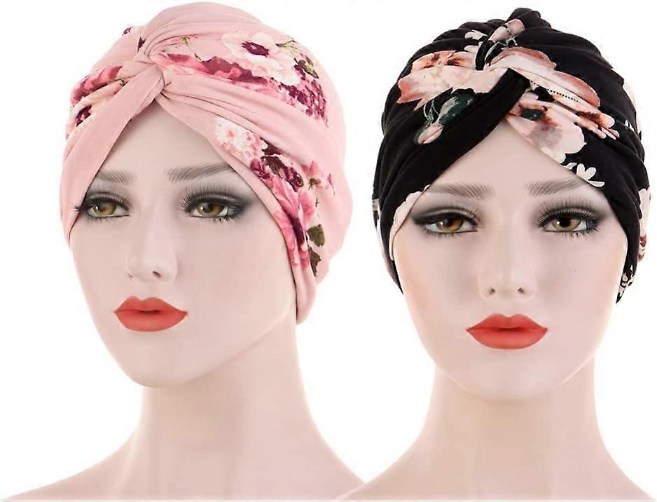 2Pcs Chemo Hat Women Bandana Knot Turban Head Scarf Muslim Sleeping Long Hair Sleeping Cover Hat (Random Color)