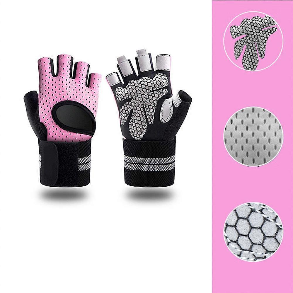 Dww - A pair of pink fitness gloves, size L, weightlifting gloves, training gloves, wrist protection, non-slip sports gloves, gym gloves for men, body