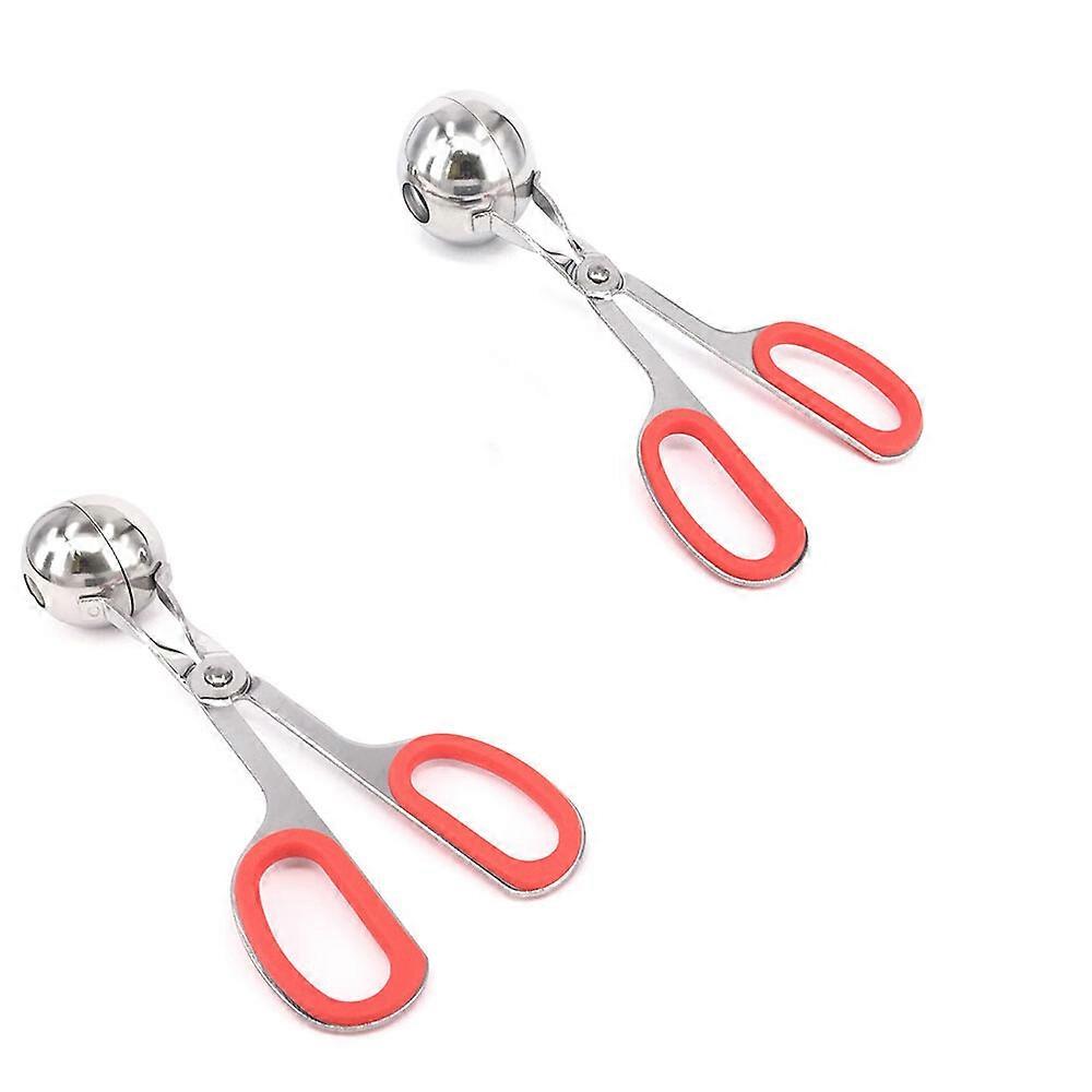 Two sets of red stainless steel meatballs in different sizes, non-stick meatballs, cake ice cream scoop, fruit, cookie dough, melon
