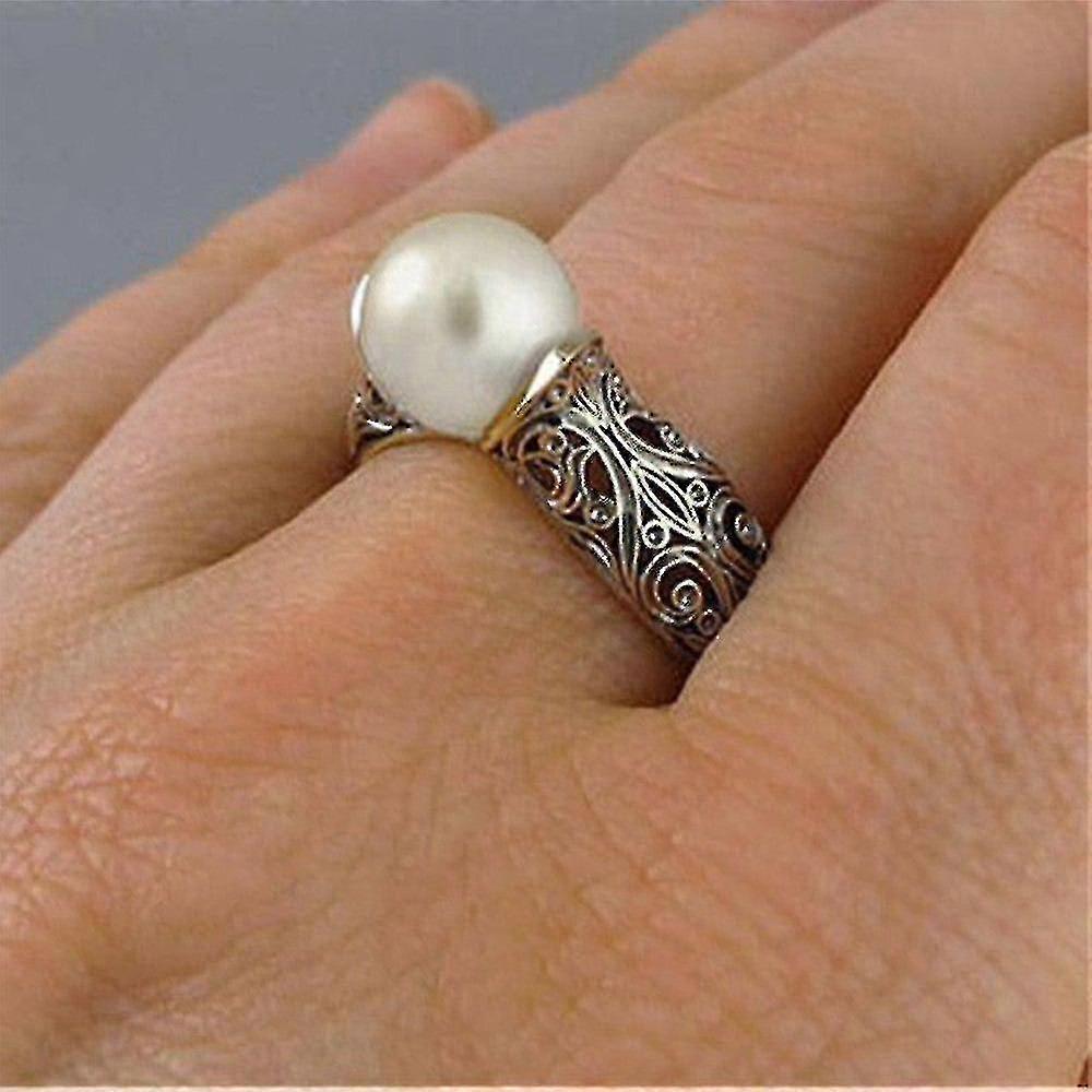 Synthetic ABS Pearl Ring in 14ct Yellow Gold Plated Vintage Silver