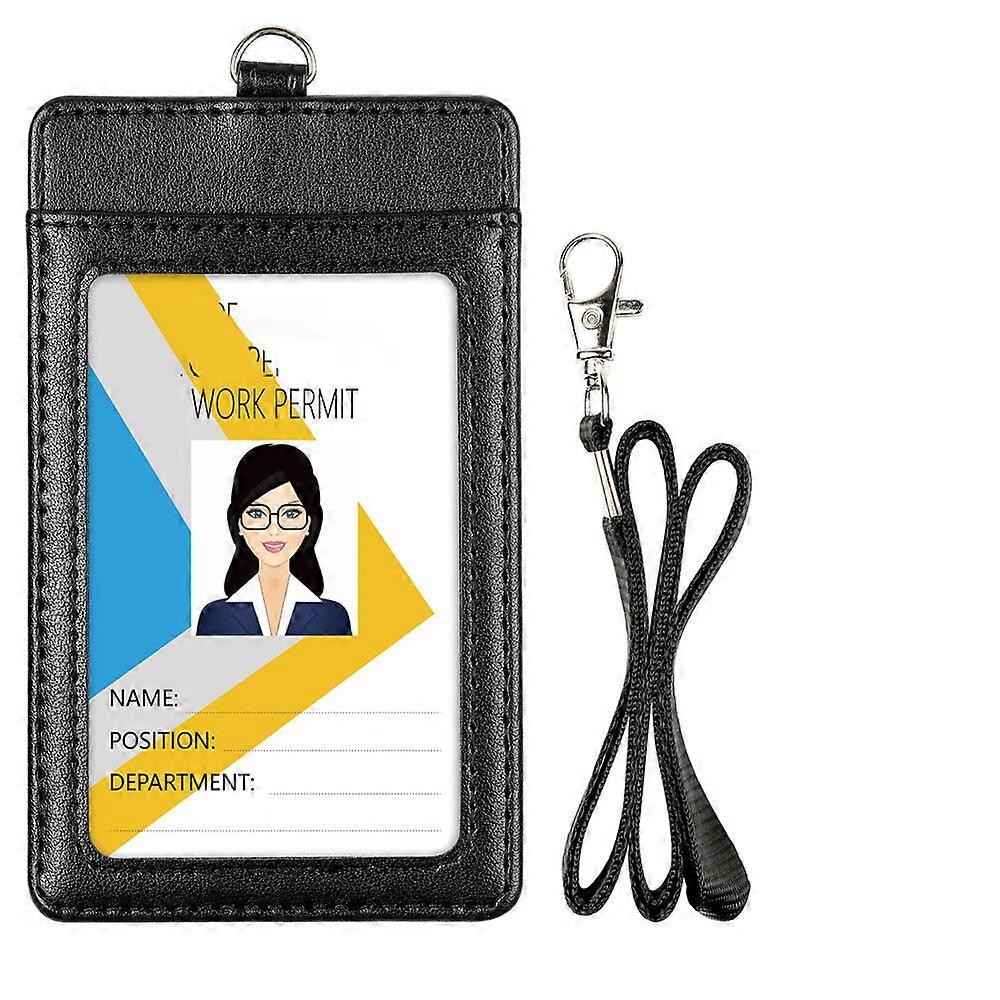 Dww - A black ID card holder with a strap, expandable ID card holder, business card box with retractable lanyard, made of PU leather, holds 2 cards, w