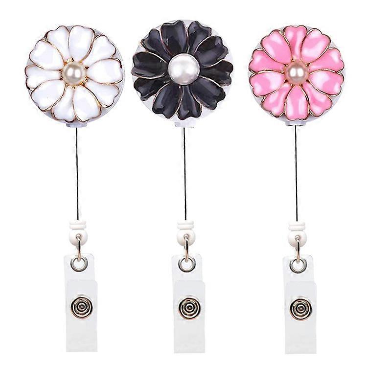 Retractable Badge Holder With Alligator Clip, Retractable Cord, ID Badge Reel With Pearl, 3 Pack