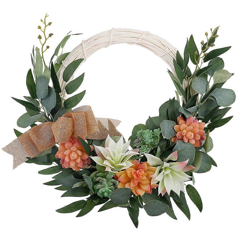 Artificial Succulent Wreath Door with Knotted Bow, Fake Wreath Hanging Wall Window Party Decoration for The Front Door, Home Decor Weddings