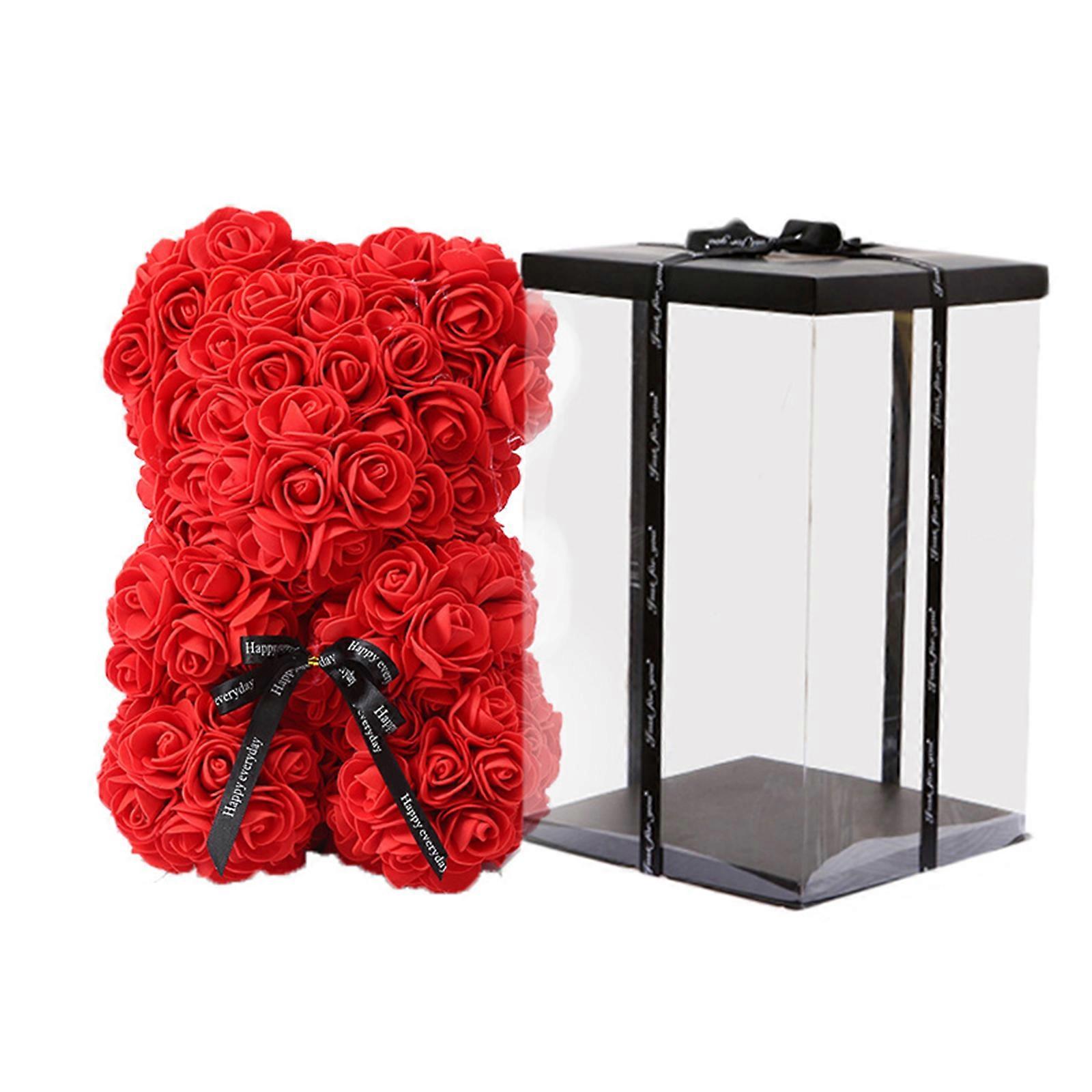 Rose Teddy Bear, Rose Flower Bear for Valentine's Day, Christmas, Birthday Gifts for Female with Artificial Heart-Shaped Diamonds Rose Flower Bear