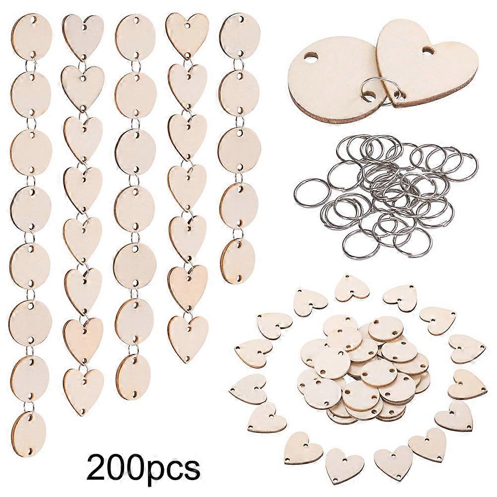 50% Off-200 Pcs Wooden Circles Wooden Heart Tags Arts Crafts with Holes Rings for Birthday Boards Valentine