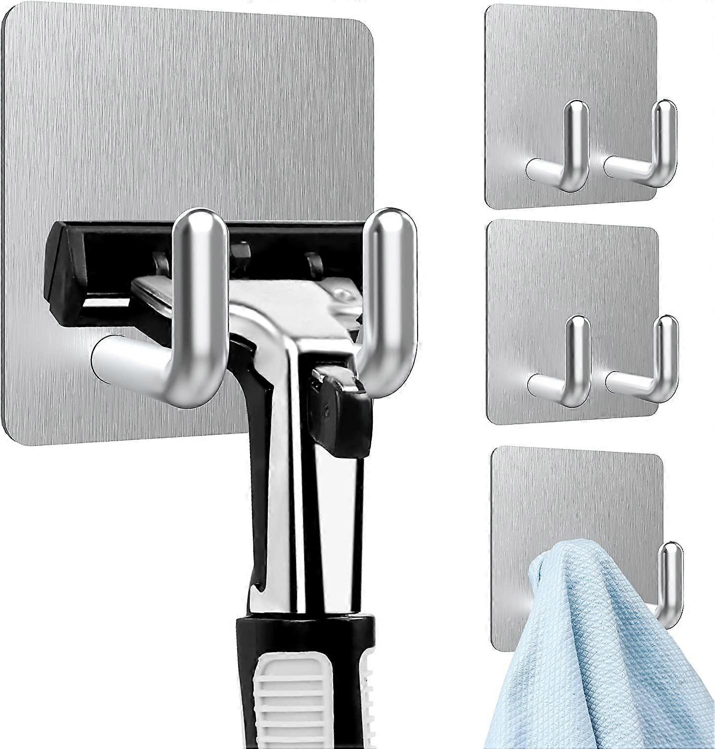 Dww-4 Pieces Adhesive Wall Hook (Strong Adhesion), Heavy Duty Stainless Steel Bathroom Towel Hook, Kitchen Towel Hook, Self-Adhesive No Drilling Requi