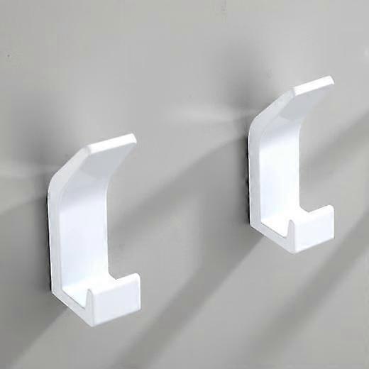 Dww-2Piece WhiteAluminum Self-Adhesive Hooks, Double Towel Hook for Bathroom, Self-Adhesive Wall Mount for Kitchen, Bathroom, Office, Closet, Aluminum