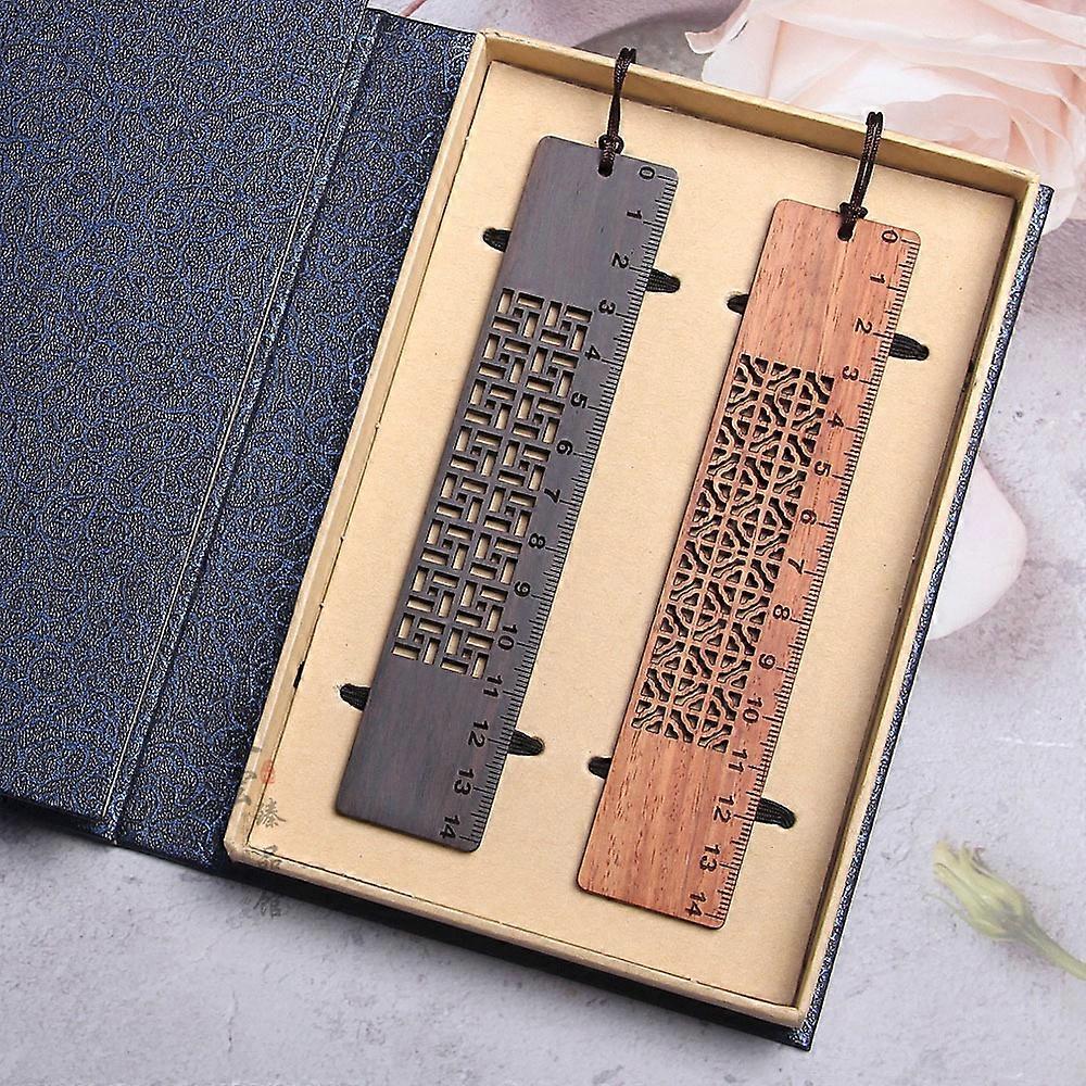 Dww-Handmade wooden bookmark gift set with two-piece ruler, bookmarks with blue and white porcelain tag is a unique gift for teachers, students, men a
