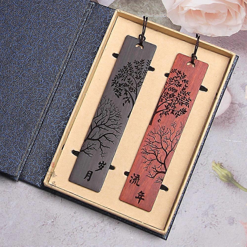 Dww-Time Passes in Two Pieces Handmade Carved Natural Wooden Bookmark Gift Box Set, a unique gift for teachers, students, ladies, fathers, and attract