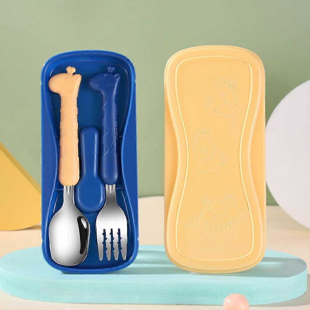 Dww-A Spoon + Fork + Box Set (Berlin Blue) Children's Tableware Learning Chopsticks Eating Learning Spoon Fork Baby Training Chopsticks Portable Box S