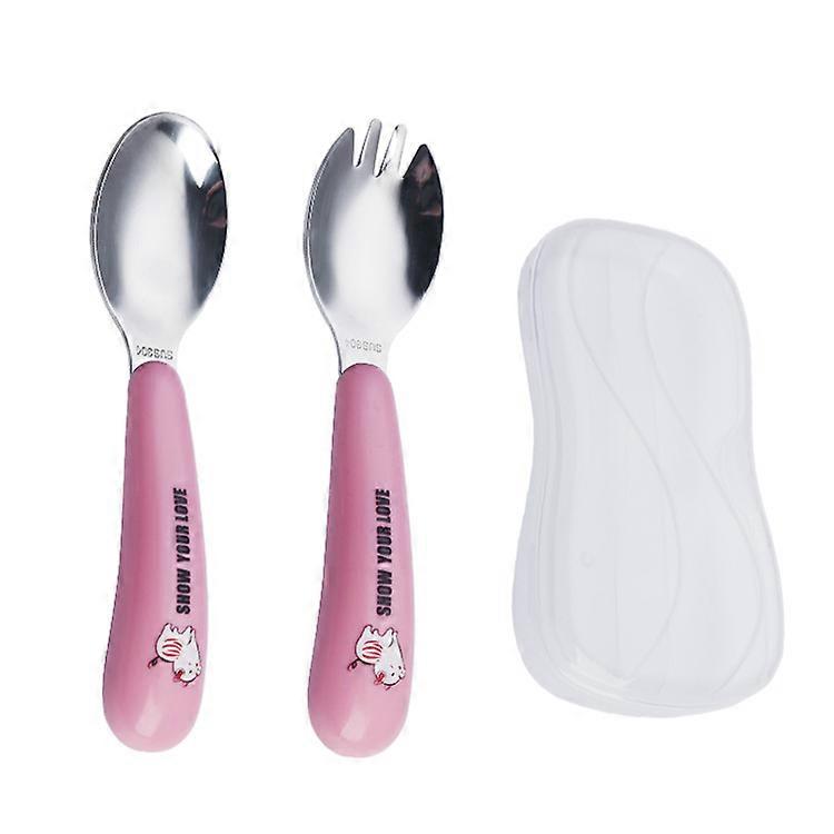 Dww - A set of pink piggy bank, fork, and spoon + cartoon spoon box - baby learning spoon, household portable tableware set