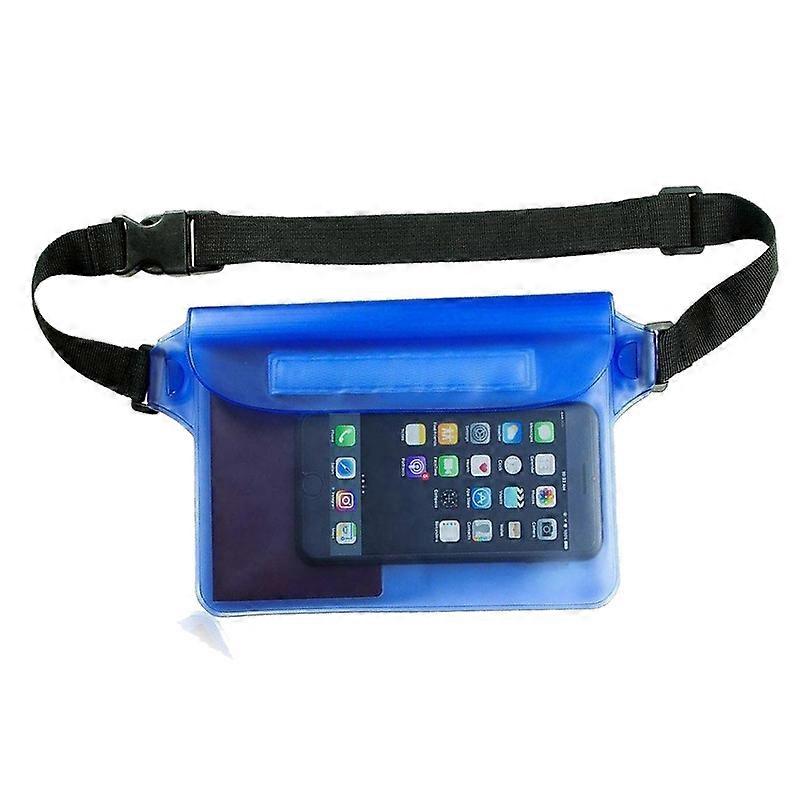Dww-2PCS Blue Waterproof Belt Pouch, IPX8 Certified, Adjustable Strap, 3 Zippers, Plastic Belt Pouch/Waterproof Case/Bag for Boating, Fishing, Kayakin