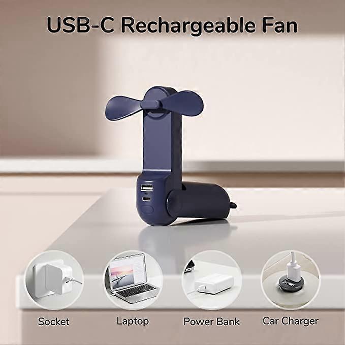 Dww-Mini Portable Fan, Blue 3-in-1 Handheld Fan, Rechargeable Pocket Fan, Battery Operated Fan [24 Hours of Work] with Power Bank, Flashlight Function