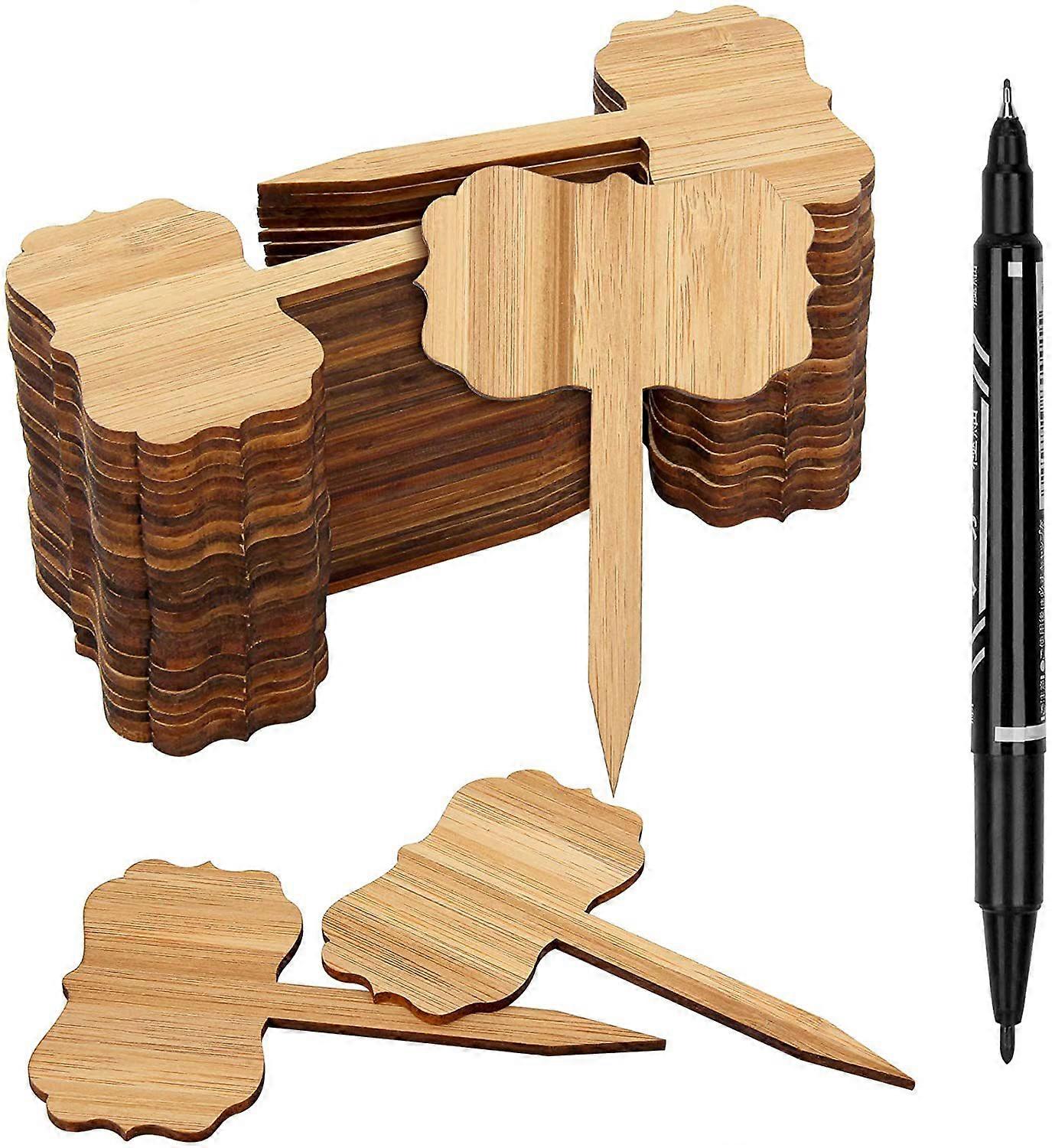 Dww-30 Pieces Bamboo Plant Labels, Decorative T-Type Plant Markers, Wooden Garden Labels with Pen, for Potted Garden Seeds, Herbs, Flowers, and Vegeta
