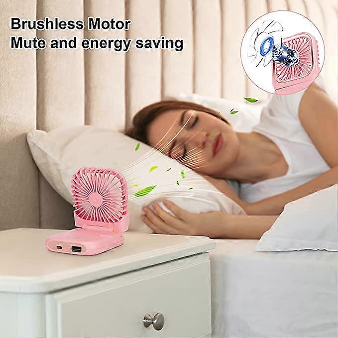Dww-USB Fan (Pink) Mini Fan, Silent Handheld Hanging Fan, USB Rechargeable with 3 Speeds, Foldable and Portable Fan for Home, Office and Travel