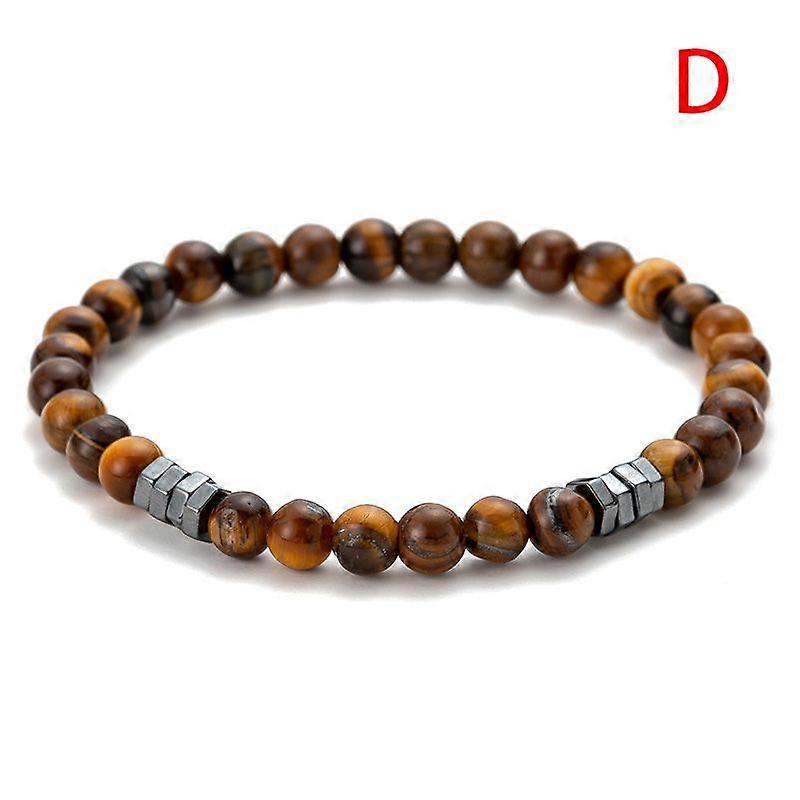 Natural Tiger Eye Stone Men'S Beaded Cuff Charm Bangle Bracelet Fashion Jewelry