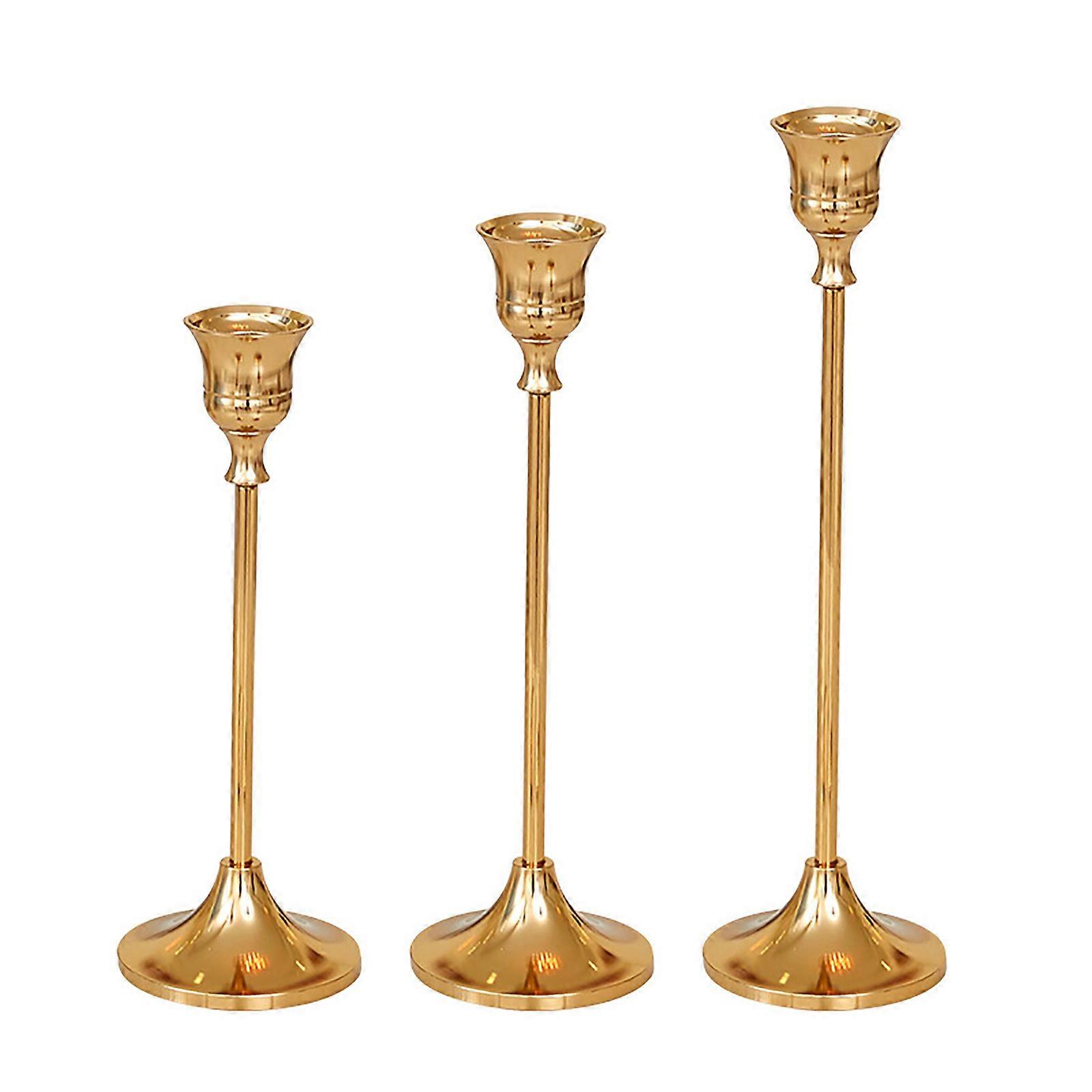 Half Price 3X Taper Candle Holders Gold Table Decorative Candlestick Holder Wedding Dinning 100% NEW