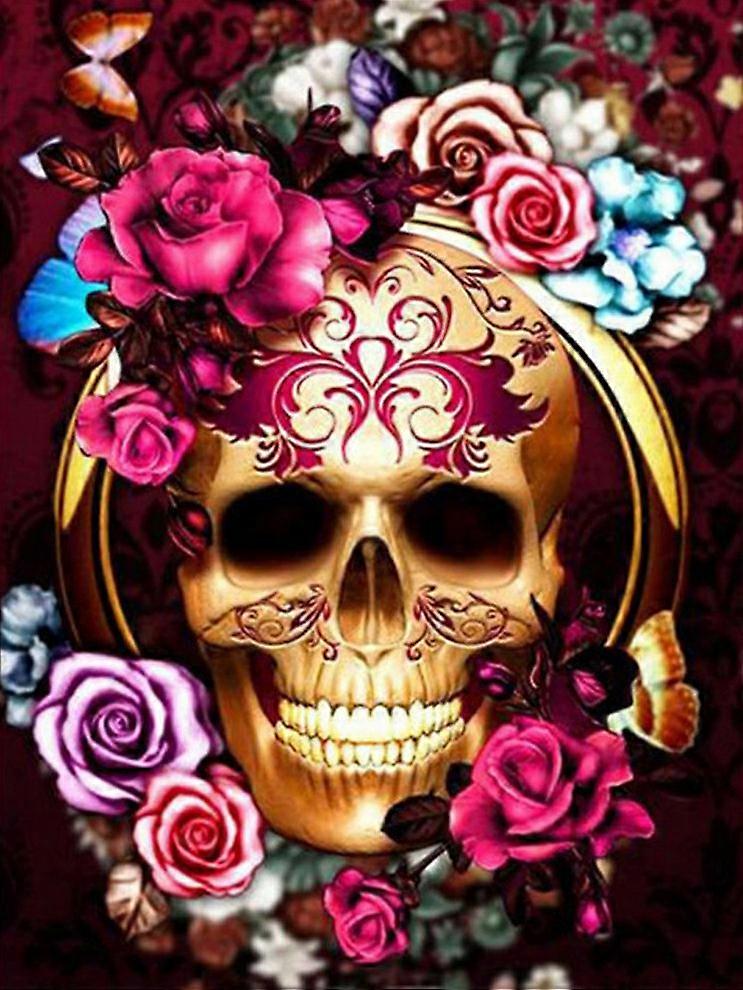 Dww-One-Piece Diamond Art Kits for Adults, DIY Diamond Painting, Full Drill, Diamond Drawing Kits, Rose Skull Arrangement, Cross Stitch, Full Drill fo