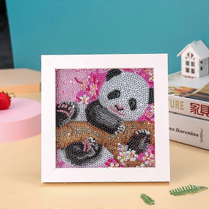 Dww - A framed panda-themed diamond painting for children, DIY handmade puzzle, creative cartoon diamond painting, full diamonds
