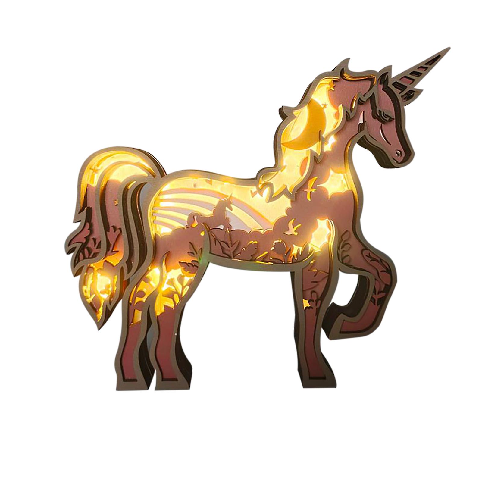 LED Wooden Animals Ornament - Wood Carved Mini Figure Statue Sculpture Animals Home Decor