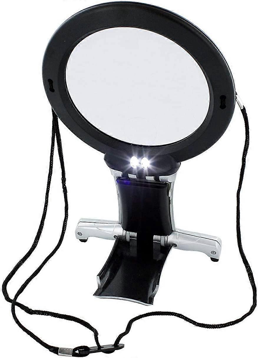 Dww-One Piece Black Magnifier with Light 2X 6X Magnification Combo Large Hands-Free Reading Magnifier Neck Strap Hanging Cord and Desktop Stand for Cr