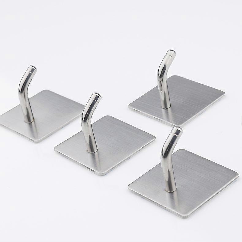 Dww-4-Piece Adhesive Hooks, Silver Stainless Steel Wall Hooks, No Drilling Required, Towel Holder with Adhesive Tape, Square Hooks for Bathroom, Livin