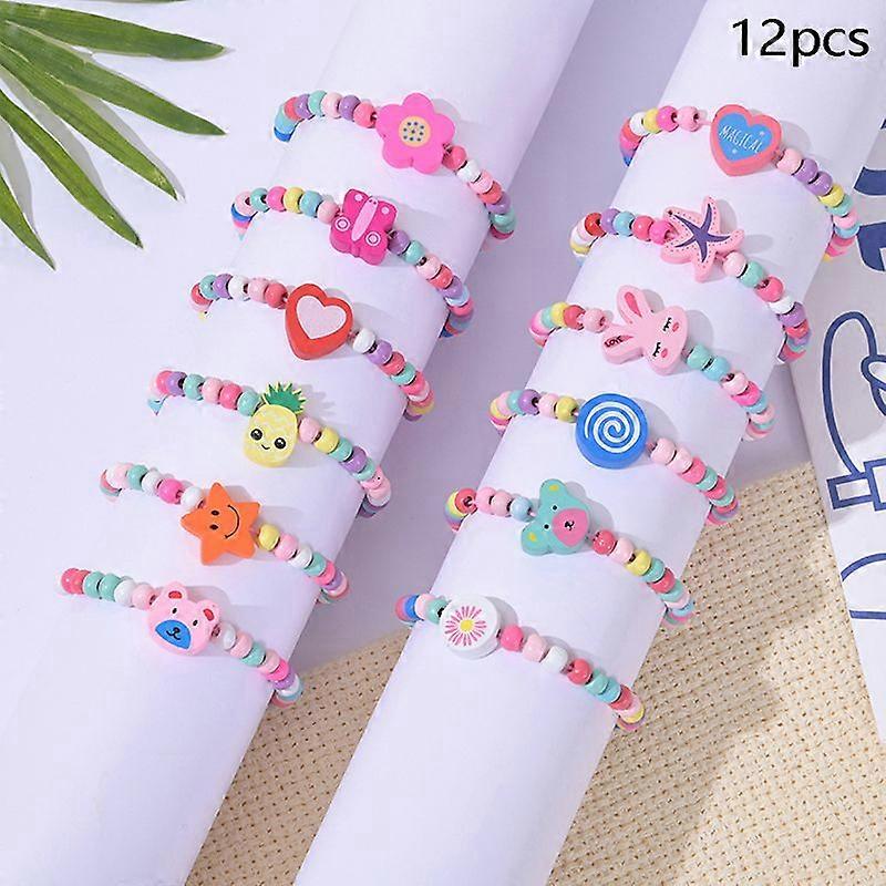 12Pcs/Pack Cartoon Kids Wooden Beads Color Bracelet Girl Birthday Party Favors