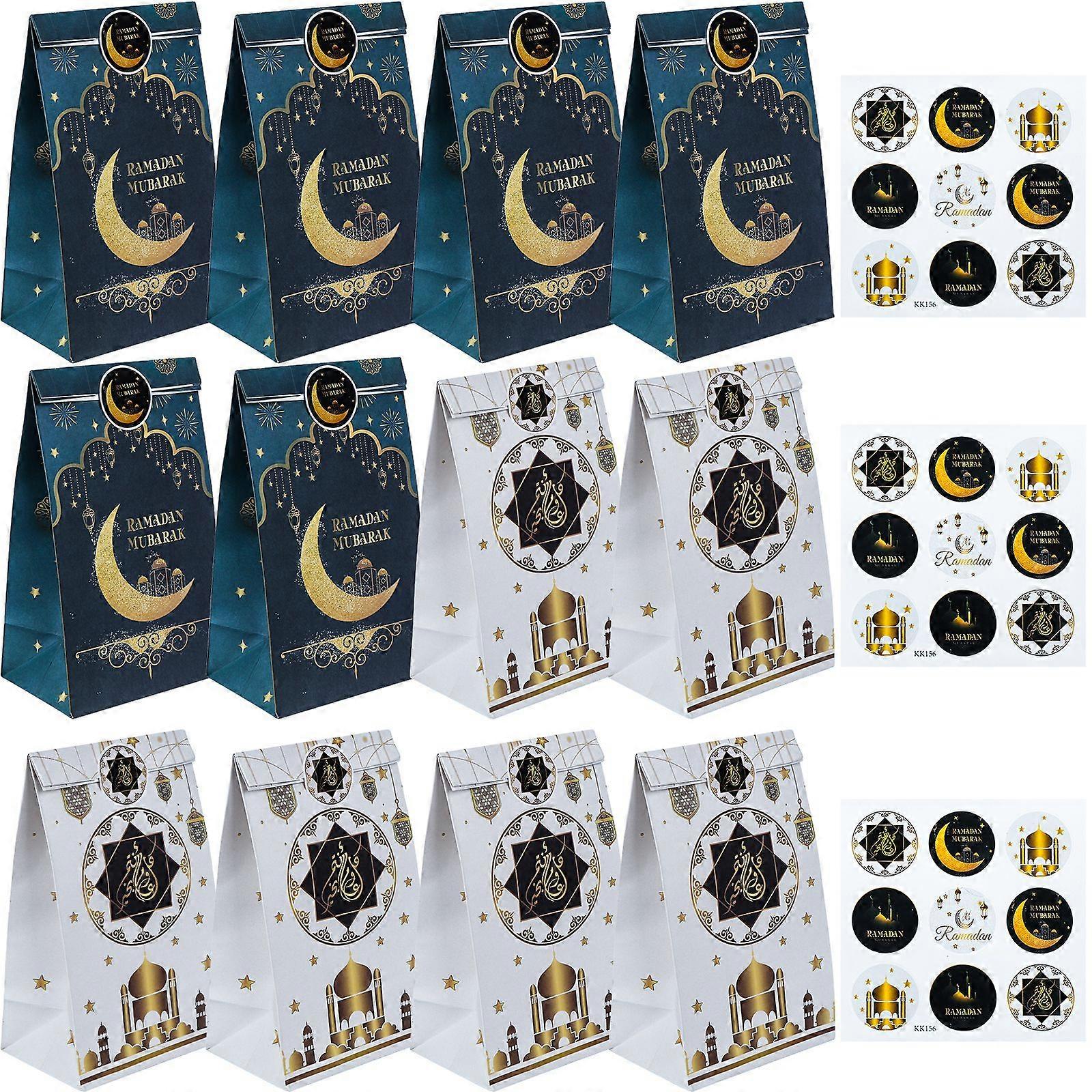 12+18Pcs Eid Mubarak Party Favor Bag With Stickers Ramadan Kraft Paper Bag