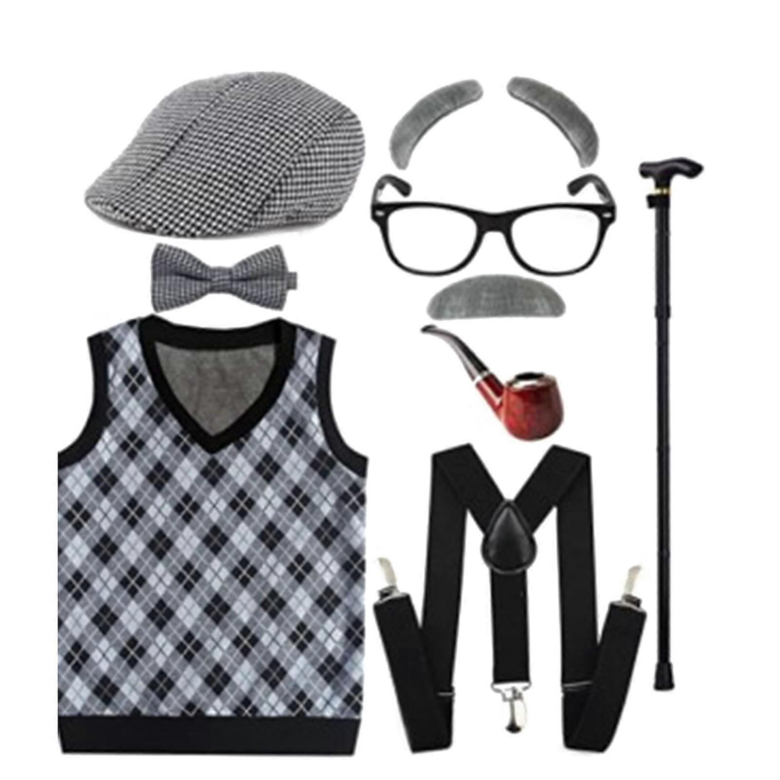 Grey wig role play cos fashion granny glasses chain wig cap necklace