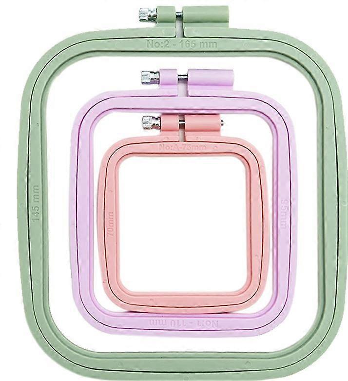 3 Pack Rectangular ABS Embroidery Hoops for Cross Stitch, Handy Sewing Tool (Multicolor), with Gold Eye Embroidery Needles, Embroidery Hoop