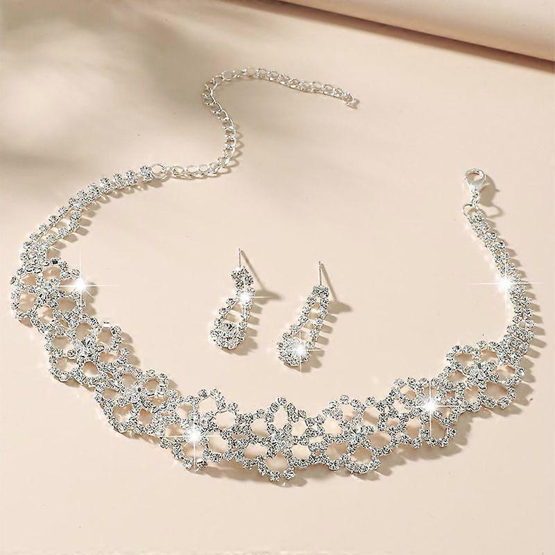 Fashion Crystal Bride Jewelry Set Rhinestone Silver-Plated Necklace Earrings Set
