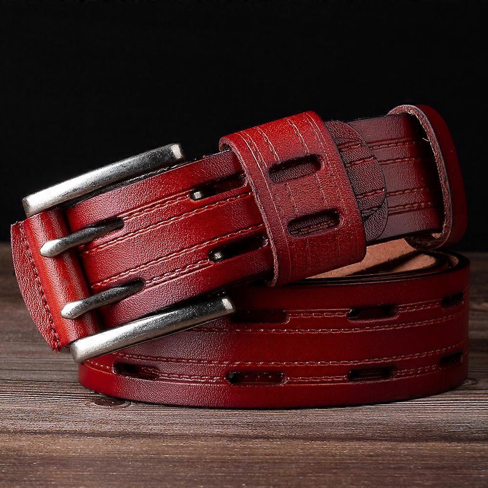 Men s Leather Double Needle Buckle Classic Tow Row Hole Jeans Belt Cowboy