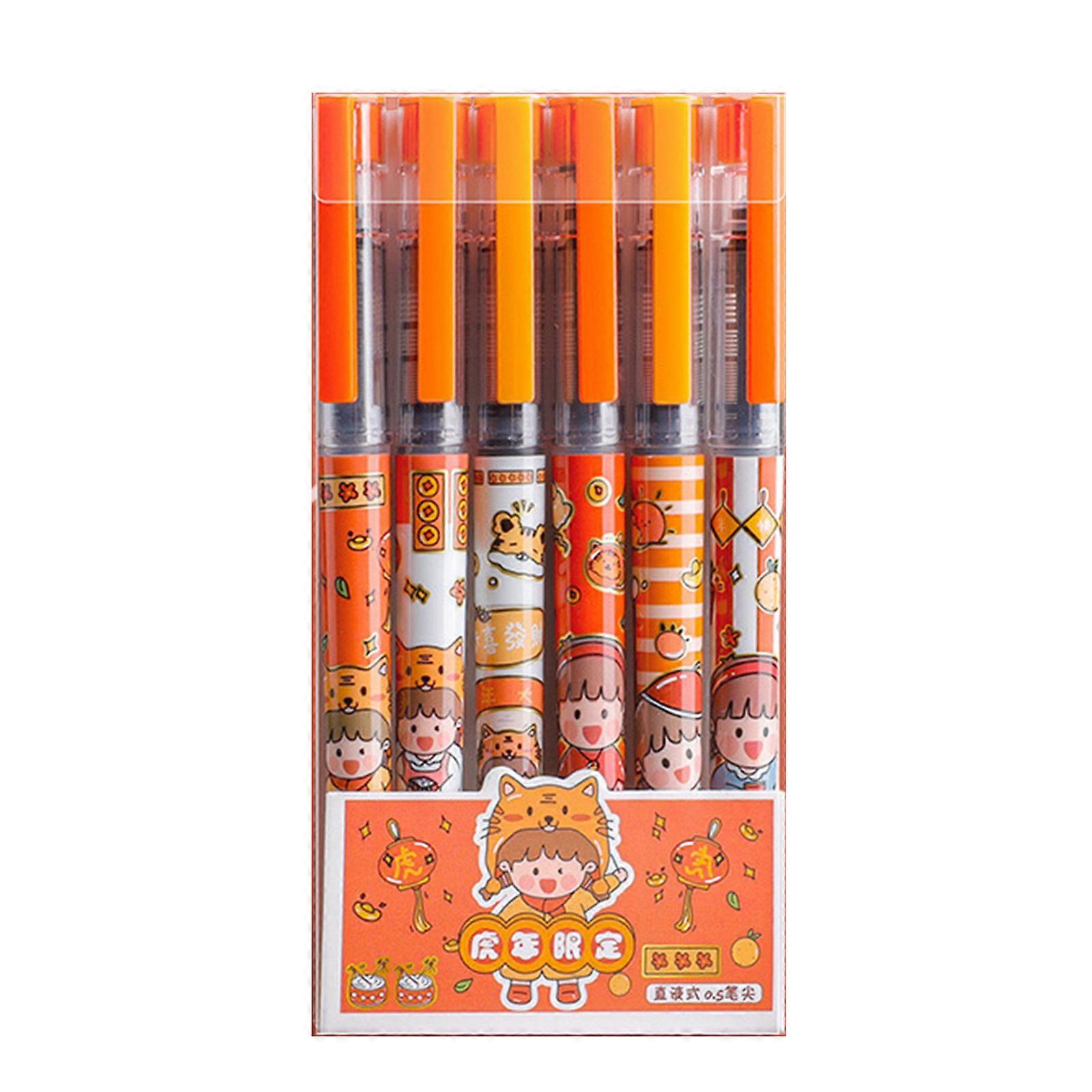 6Pcs Black Gel Pen Set Rollerball Pen Liquid Ink Pen Kit Quick Dry Long Lasting