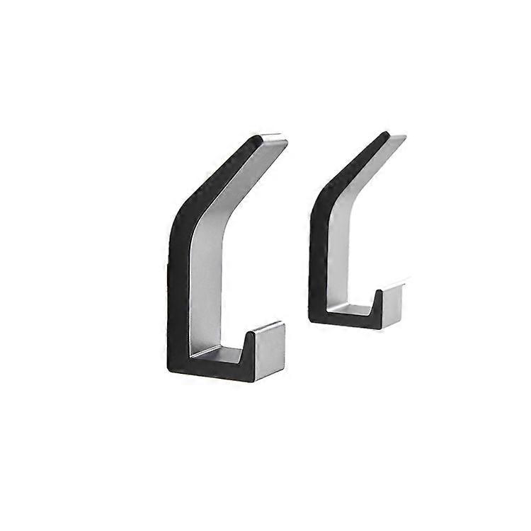 2Pieces (Black) Aluminum Self Adhesive Hooks, Double Bathroom Towel Hook, Self Adhesive Wall Mount for Kitchen, Bathroom, Office, Closet, Aluminum