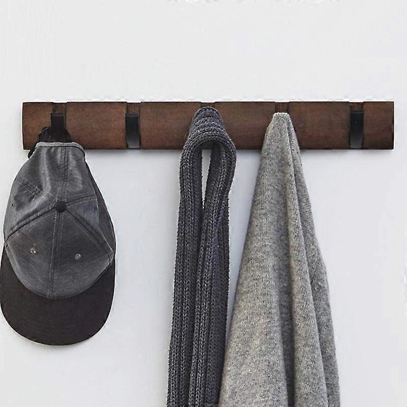 Dww-5 - 5-Hook Retractable Coat Rack - Brown Wood and Black Metal Hooks