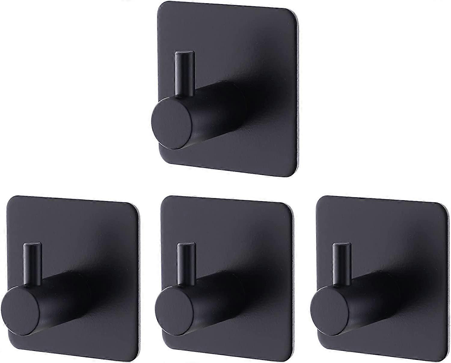 Dww-4 Pieces Black Adhesive Wall Hooks, Adhesive Wall Hooks for Bathroom and Kitchen, Stainless Steel Self-Adhesive Wall Hooks without Drilling