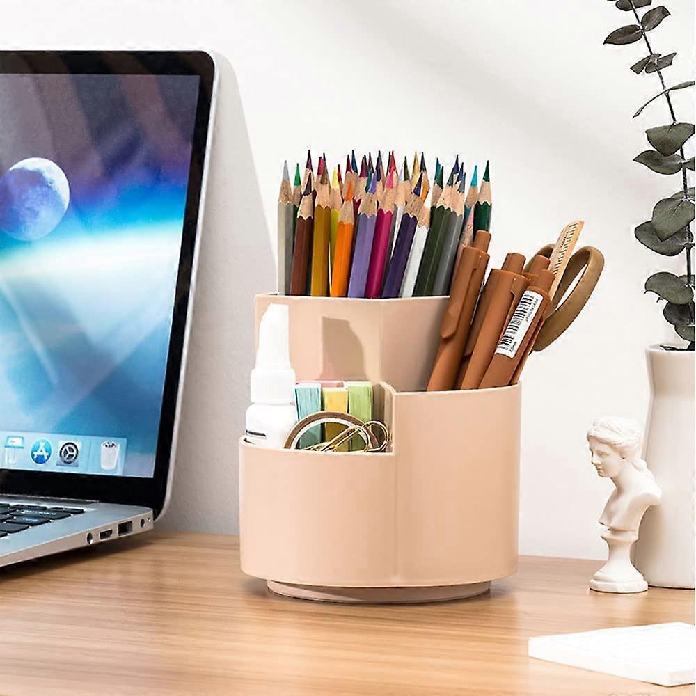 Dww-Pencil Holder Storage Box, Plastic Pencil Pot, Stationery Pen Holder, Space Saving, 360 Rotation and 3 Compartments, Storage Box for Home, Office,