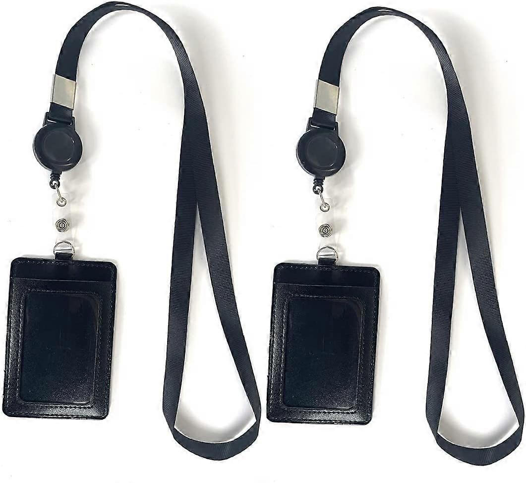Dww-2 Pieces Retractable Badge Holder with Lanyard, PU Leather ID Card Case for Badge Card Holder, ID Card Holder for Work, Exhibition, Office, Factor