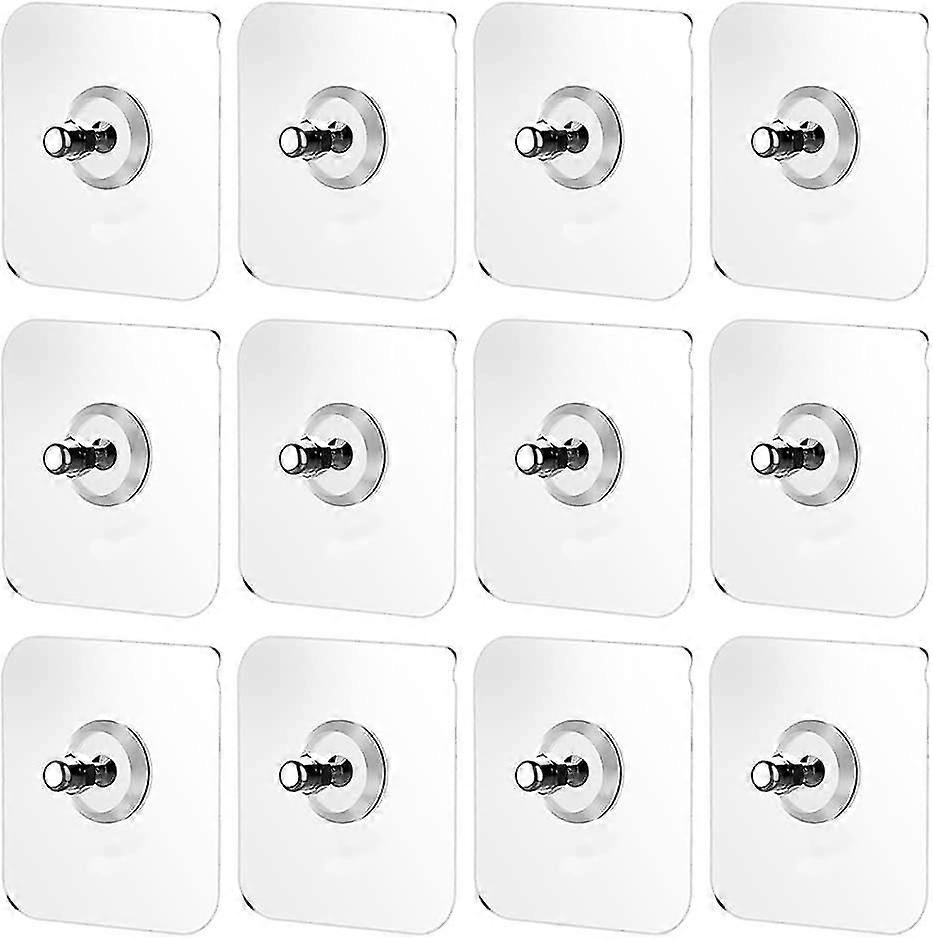 12 7x7cm Self Adhesive Hanging Nails - Reusable Screw Stickers - Clear No Drilling Towel Hooks For Bathroom/kitchen @BUGU