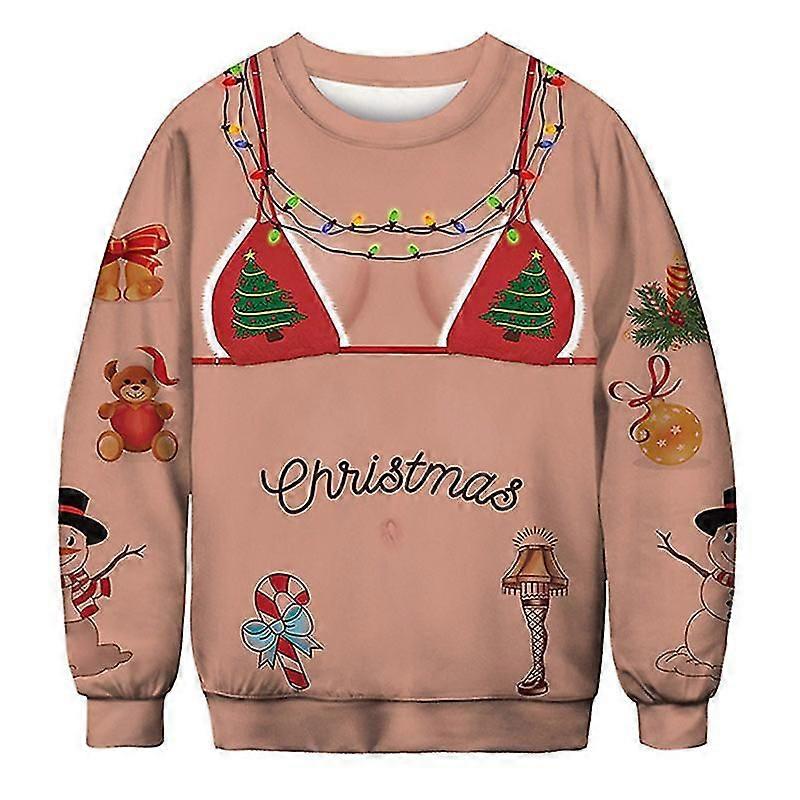 Unisex Funny Christmas Print Long Sleeve Sweater Pullover Tops Jumper Sweatshirt @BUGU