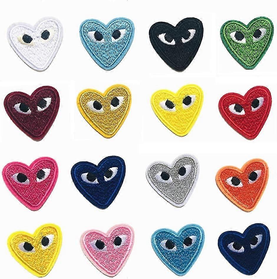14 Pack Heart Shaped Iron On Patches With Cute Eyes Embroidered For Backpacks, Jackets, Jeans, Clothes, Crafts @BUGU