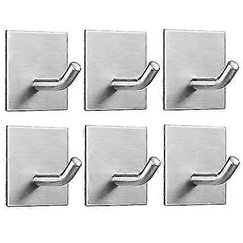 Heavy Duty Adhesive Hooks, Stick On Wall Adhesive Hangers, Strong Stainless Steel Holder 6 Packs Silver @BUGU