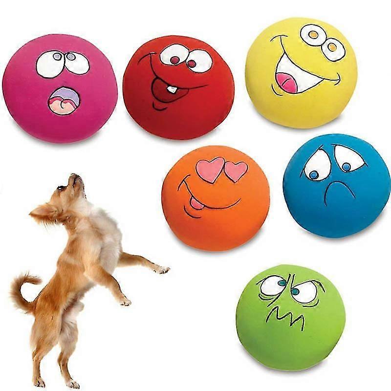 6 Pcs/set Pet Cat Dog Toys Teeth Squeaker Ball Puppy Squeaky Sound Face Fetch Play Toy @BUGU