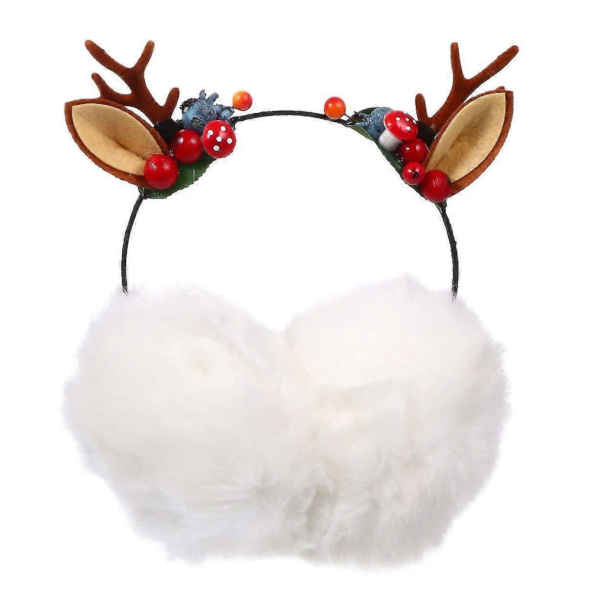 Christmas Earmuffs Cartoon Reindeer Antler Headband Warm Winter Ear For Xmas Holiday Party Headdress @BUGU